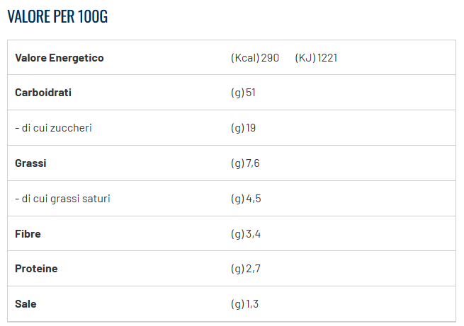 INGREDIENTI: amido di mais, acqua, farcitura al cioccolato 18% (sciroppo di glucosio, zucchero, acqua, cioccolato fondente 7% (pasta di cacao 41,5%, zucchero 37,5%, cacao magro in polvere 21%), grasso vegetale (palma), destrosio, latte scremato in polvere, cacao in polvere 2%, alcool etilico, gelificanti: E 440, E 1442; conservante: sorbato di potassio; aromi, sale), uova, zucchero, burro, farina di riso, fibre di psyllium, lievito, sale, addensanti: idrossi-propil-metilcellulosa, gomma di guar; emulsionante: mono- e digliceridi degli acidi grassi; aromi, proteine di soia.